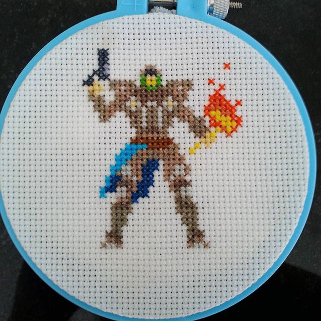There really is no backstory to the cross-stitch — I decided that I’d rather make Matt a Titan based on Chris Barrett’s 8-bit Guardians from Destiny rather than send him the Destiny nail art that I had intended for him.