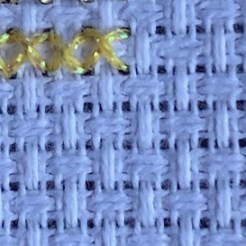 Initial Stitching Thoughts: I completed 1 and 2 strands on the navy aida only, as I tried on the white and it wouldn’t show up in the photo!