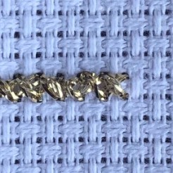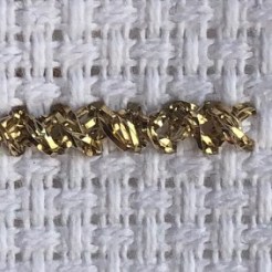 Brand Advice: Kreinik state the following: “Kreinik Japan Threads are synthetic, non-tarnishing gimps available that give the appearance of stitching with real metals. Use them anywhere, from Asian embroidery to charted needlepoint, painted canvas, samplers, ecclesiastical, and other surface embroidery. Stitch with Japan #7 or couch it (tack it on the surface) using a thinner thread”.