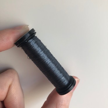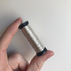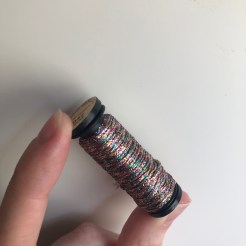 Texture of Thread: The thread feels ultra fine and lightweight, with a slight bumpy/scratchiness when moving between two fingers. It looks almost dotted between the metallic / colour (like I’m stitching a dotting line)