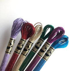 Brand Advice: DMC state that these “add a glamorous metallic glimmer to your embroidery project. Formed of six easily divisible strands you can use alone or combine with stranded cotton for just a hint of shimmer. For the best stitching experience, work with a shorter length of Light Effects (no more than 30cm) to prevent fraying. If Light Effects become twisted while stitching, drop your needle and let it unwind itself.”