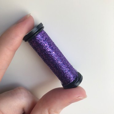 I could only obtain a purple colour when I was purchasing these, which may not show up well in the photos. In person, even with one strand you can clearly see the purple plus the slight flecks of metallic shine come through. It feels like a ‘hint’ of metallic and would be nice if you want to add a hint or shine to your work without having to go fully heavy metallic.