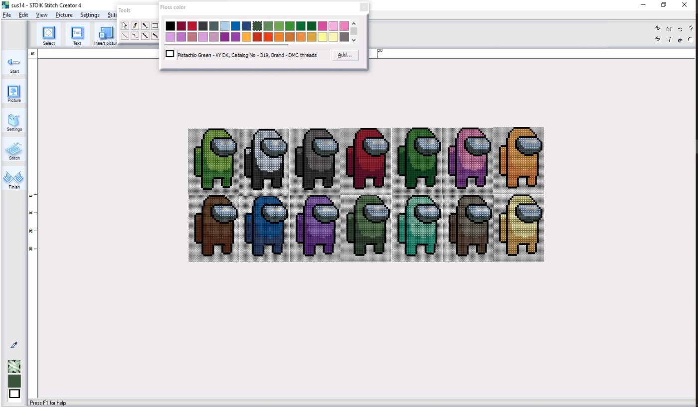 This time it’s from Among Us which is, you know, everywhere right now. I haven’t had the time to stitch this up yet, but I did want to post the chart in case anyone wants to tackle this.