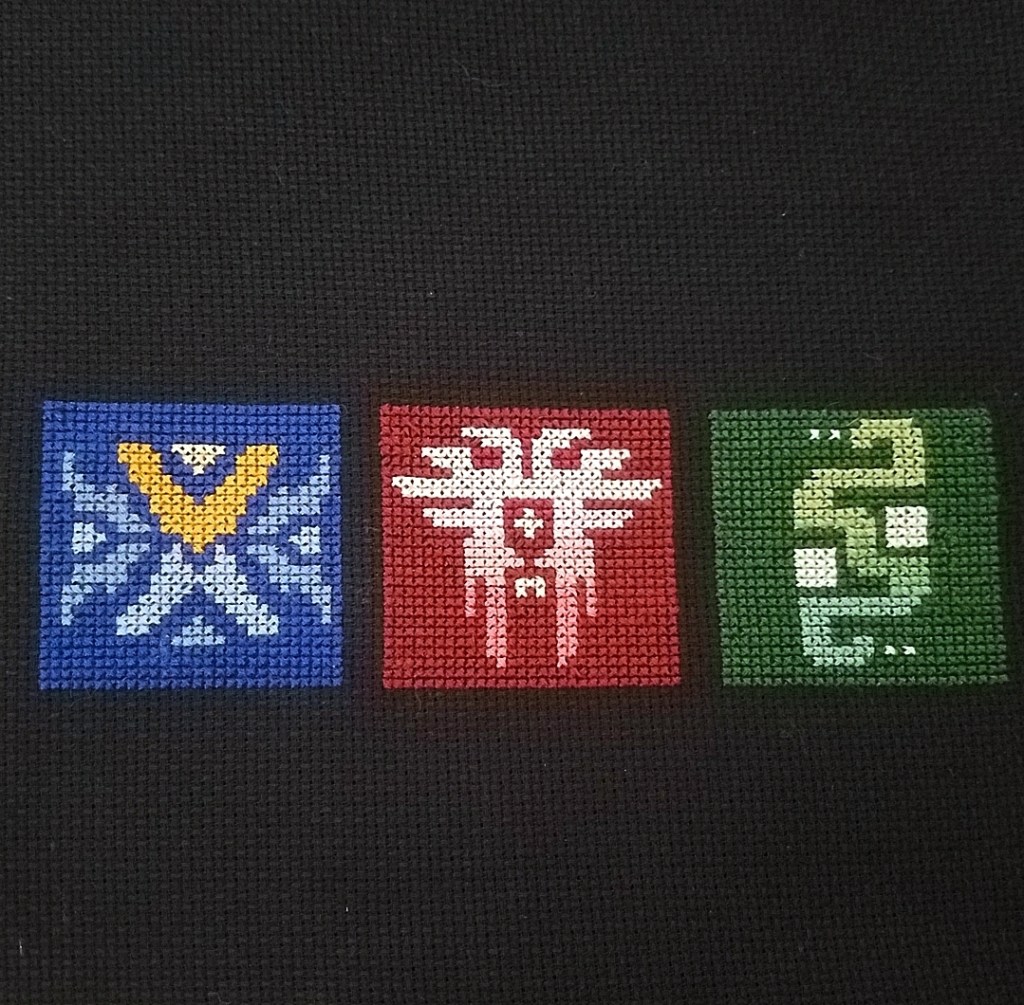 When I finished the emblem project last January, I really didn’t think I was going to stitch any more D2 emblems. Stitching one would have seemed silly and there was absolutely no way I was going to try to come up with another 48. But, then I saw the Vendor Seasonal emblems for the Season of the Chosen and, boom, inspiration struck.