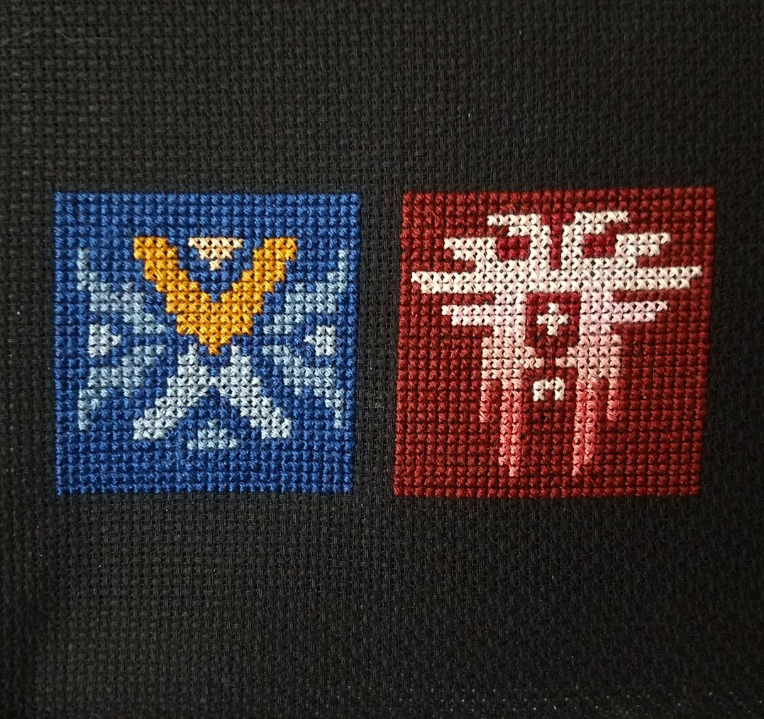 When I finished the emblem project last January, I really didn’t think I was going to stitch any more D2 emblems. Stitching one would have seemed silly and there was absolutely no way I was going to try to come up with another 48. But, then I saw the Vendor Seasonal emblems for the Season of the Chosen and, boom, inspiration struck.