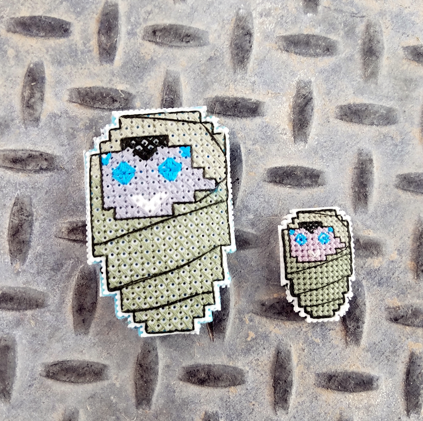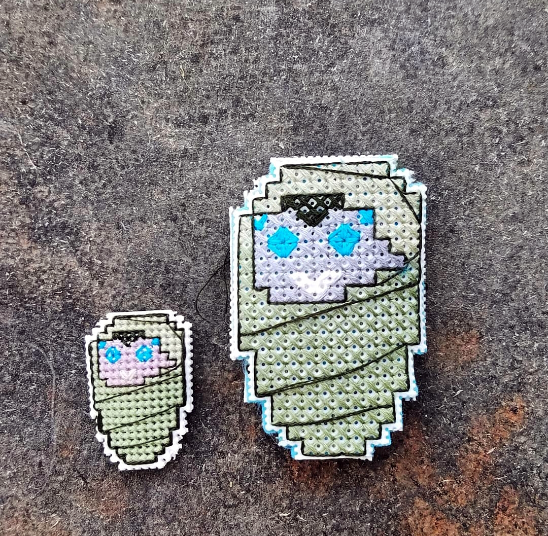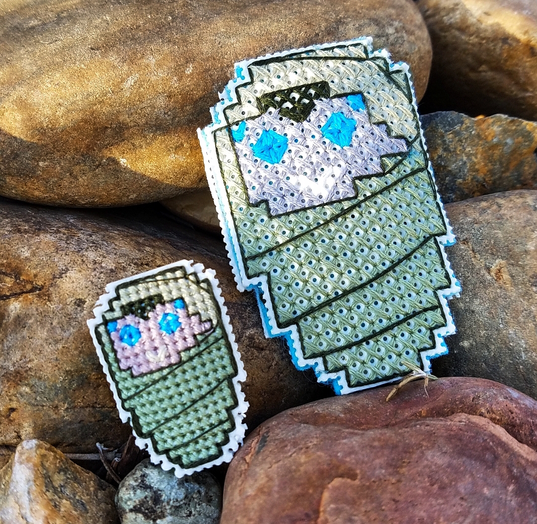 I decided to fill my Smallen with some rice and use felt as a back so that they have a little plumpness to them. The pictures don’t really show that, but that is certainly one way you can finish it. You could also put a magnet on the back and turn the design into a needle minder very easily.