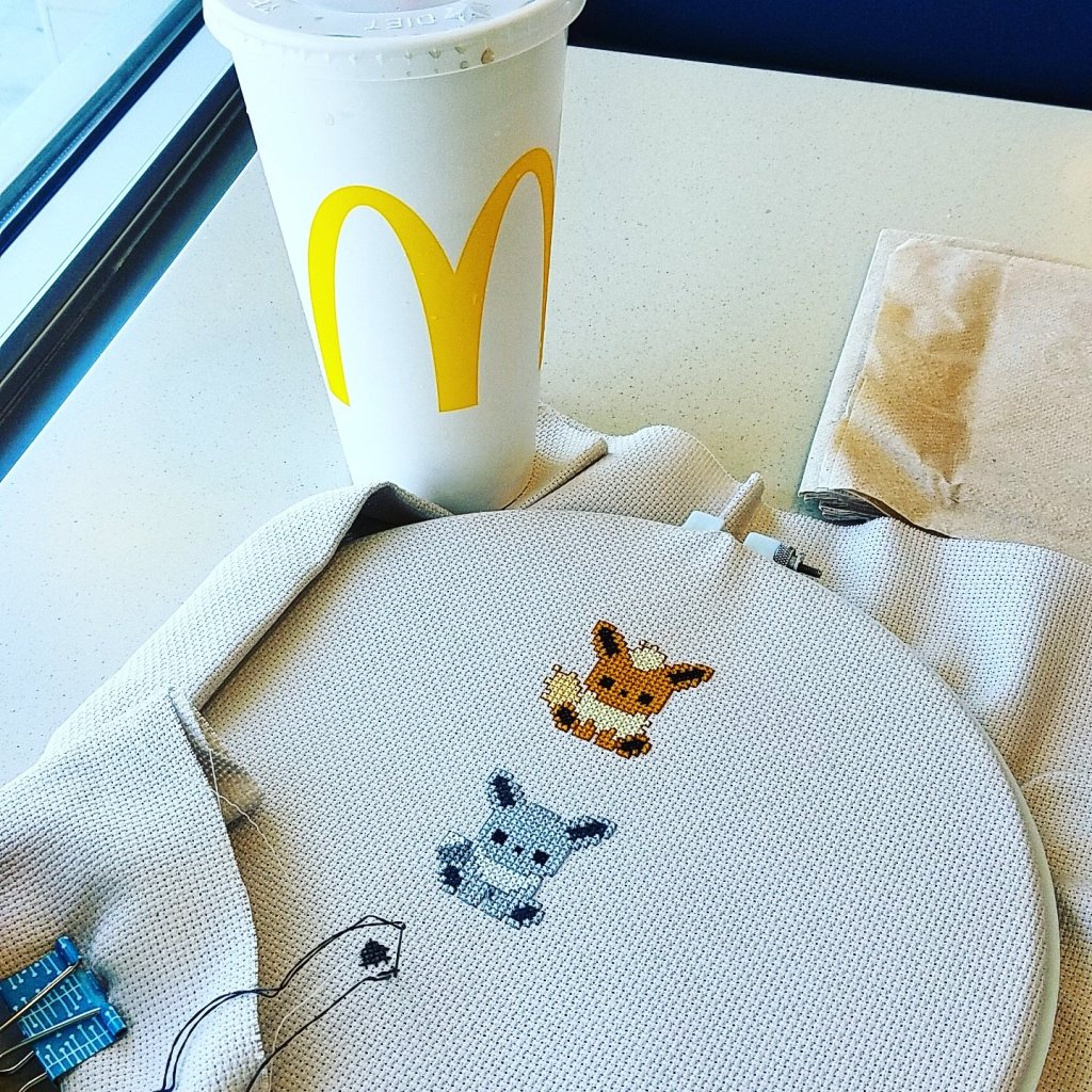 I do follow serveral simple “rules” when I craft up the neighborhood. The first one is that I have to be able to cross-stitch there. Even if it’s a few stitches or a few hundred, I don’t post a pic unless I can cross-stitch which means that I have to be able to use both hands, and be able to stop for at least a few minutes.