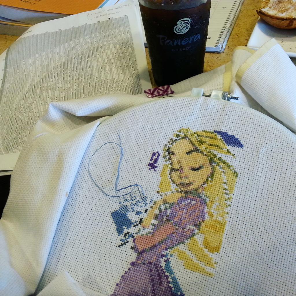 I do follow serveral simple “rules” when I craft up the neighborhood. The first one is that I have to be able to cross-stitch there. Even if it’s a few stitches or a few hundred, I don’t post a pic unless I can cross-stitch which means that I have to be able to use both hands, and be able to stop for at least a few minutes.