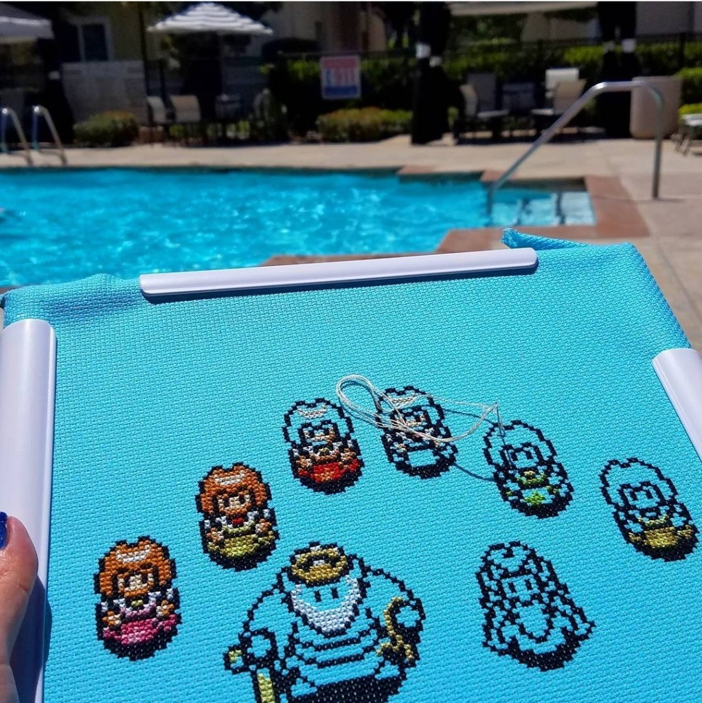 If you’re in an apartment complex, you can always take advantage of the public areas so you can still feel like you’re in the spirit of the challenge. Going to the pool, playground, or clubhouse can add that feeling of going out and showing your craft to the world. (And who knows? You might even get some of your neighbors interested in cross-stitching!)
